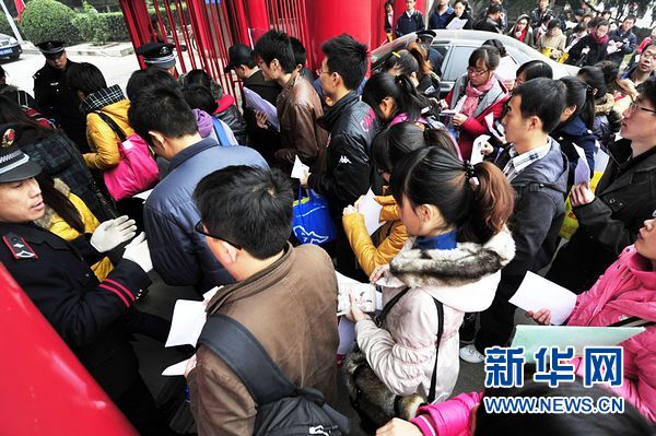 资料图片:11月27日,在济南山东省实验中学考点,参加考试的人员排队入场。当日,2012年度中央机关及其直属机构考试录用公务员公共科目笔...[详细] 2011-11-28 -